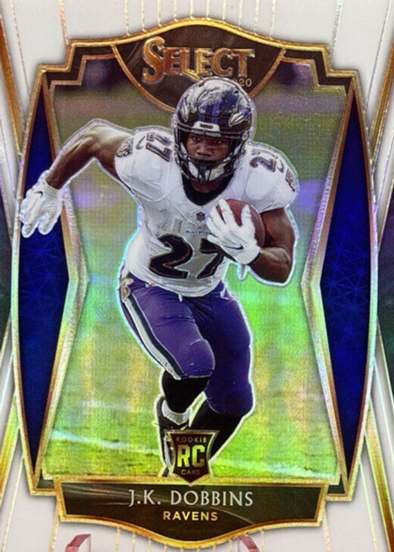 This card is 1 of 171 JK Dobbins' card variations in the 2020 Select set being tracked by Sports Card Investor, including Club Level, Concourse, Field Level, Premier Level, and Club Level Blue Die-Cut.