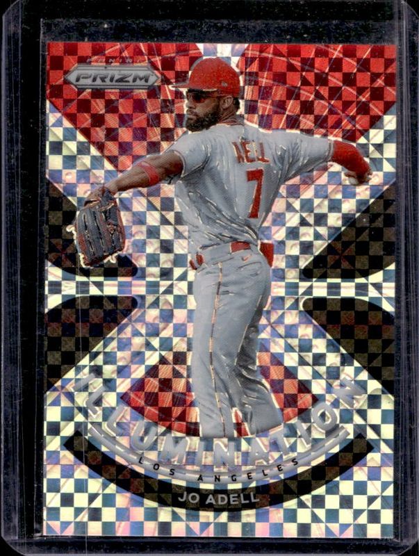 The Jo Adell 2021 Prizm #IL-1 Illumination - Power Plaid /75 Rookie card is 1 of 123 Jo Adell's card variations in the 2021 Prizm set being tracked by Sports Card Investor, including Base, Blue, Blue Velocity, Carolina Blue, and Cosmic Haze.