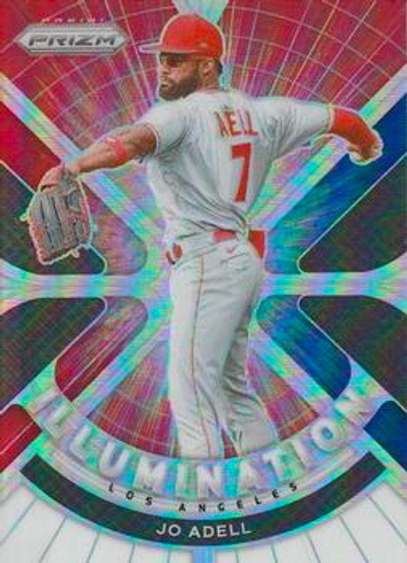 The Jo Adell 2021 Prizm #IL-1 Illumination - Silver Rookie card is 1 of 123 Jo Adell's card variations in the 2021 Prizm set being tracked by Sports Card Investor, including Base, Blue, Blue Velocity, Carolina Blue, and Cosmic Haze.