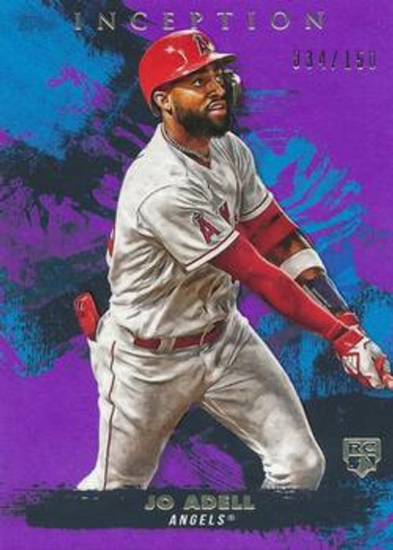 The Jo Adell 2021 Topps Inception #20 Purple /150 Rookie card is 1 of 46 Jo Adell's card variations in the 2021 Topps Inception set being tracked by Sports Card Investor, including Base, Green, Magenta /99, Red /75, and Orange /50.