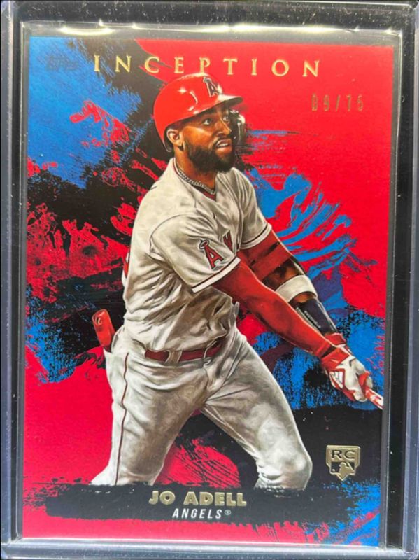 The Jo Adell 2021 Topps Inception #20 Red /75 Rookie card is 1 of 46 Jo Adell's card variations in the 2021 Topps Inception set being tracked by Sports Card Investor, including Base, Green, Purple /150, Magenta /99, and Orange /50.