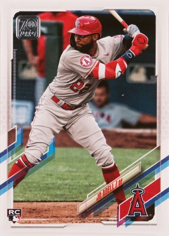 This card is 1 of 11 Jo Adell's card variations in the 2021 Topps set being tracked by Sports Card Investor, including Base, Gold Foil, Rainbow Foil, Gold /2021, and Green Foil /499.
