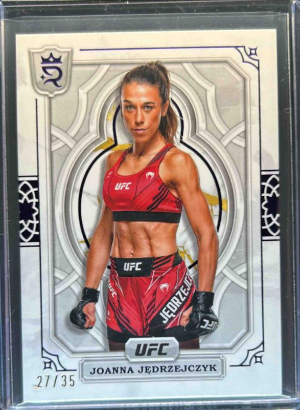 The Joanna Jedrzejczyk 2024 Topps UFC Royalty #35 Purple /35 card is 1 of 25 Joanna Jedrzejczyk's card variations in the 2024 Topps UFC Royalty set being tracked by Sports Card Investor, including Base /99, Blue /25, Red /15, Gold /10, and Green /5.