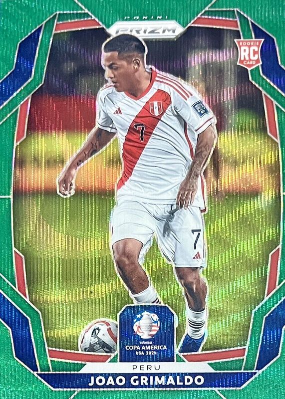 This card is 1 of 38 Joao Grimaldo's card variations in the 2024 Prizm Copa America set being tracked by Sports Card Investor, including Base, Green Ice, Hyper, Ice, and Pink.