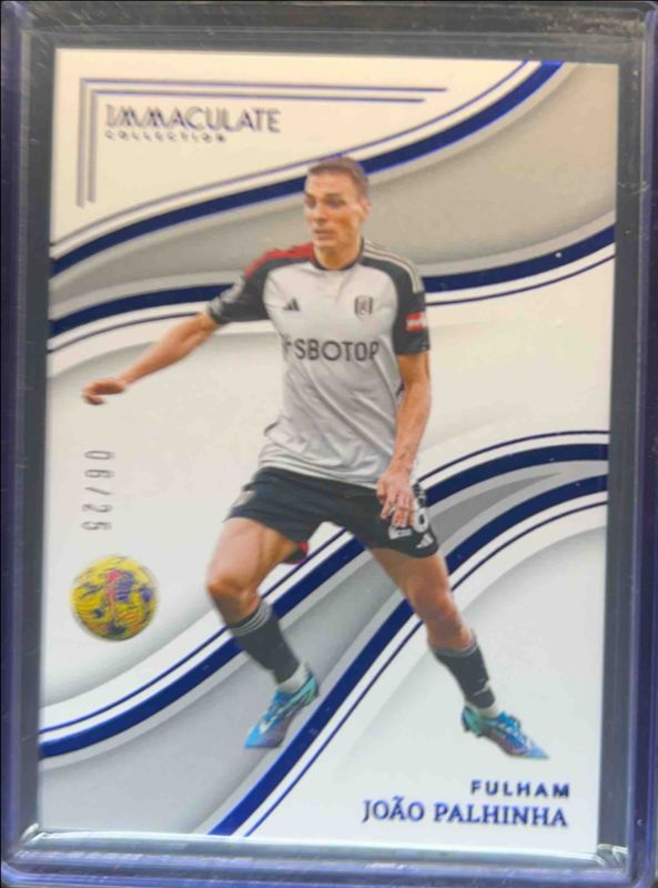 The Joao Palhinha 2023 Immaculate #169 Sapphire /25 card is 1 of 18 Joao Palhinha's card variations in the 2023 Immaculate set being tracked by Sports Card Investor, including Base /60, Silver /40, Ruby /19, Gold /10, and Platinum /1.