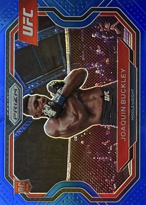 The Joaquin Buckley 2021 Prizm UFC #190 Blue /199 Rookie card in Raw condition has moved up $0.01 (+0.1%) in the last 30 days and was last sold for $10.00 .