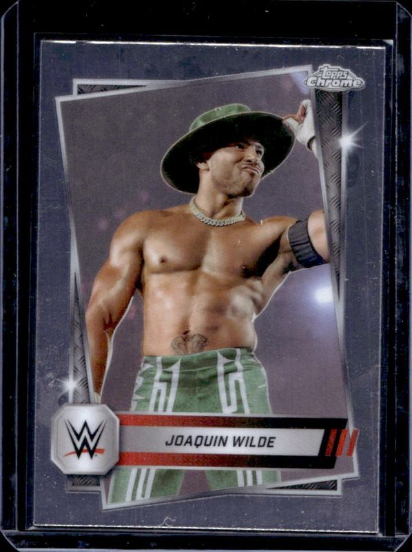 The Joaquin Wilde 2025 Topps Chrome WWE #128 Base card is 1 of 36 Joaquin Wilde's card variations in the 2025 Topps Chrome WWE set being tracked by Sports Card Investor, including Black & Gold Refractor, Geometric Refractor, Neon Green & Black Refractor, Pink Shimmer Refractor, and Prism Refractor.