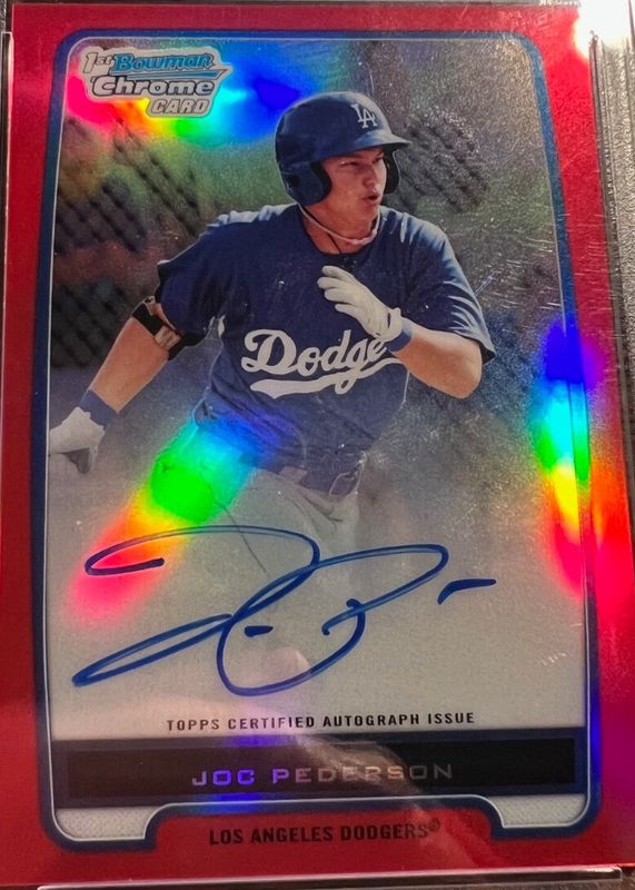 Joc Pederson 2012 Bowman #BCP104 Chrome Prospect Auto - Red Refractor /5 (1st) RAW Price Guide