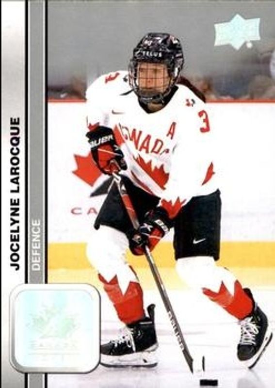 The Jocelyne Larocque 2023 Upper Deck Team Canada Juniors #44 Base card is 1 of 22 Jocelyne Larocque's card variations in the 2023 Upper Deck Team Canada Juniors set being tracked by Sports Card Investor, including Clear Cut, Clear Cut Exclusives, Green, Jerseys, and Patterned Foilboard.