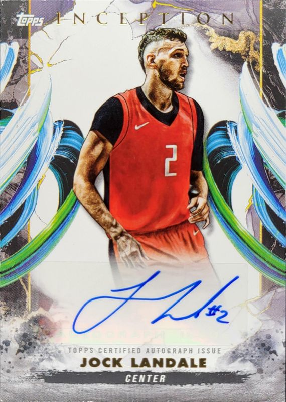 The Jock Landale 2024 Topps Inception #AC-JLA Autographs card is 1 of 7 Jock Landale's card variations in the 2024 Topps Inception set being tracked by Sports Card Investor, including Autographs - Pink /99, Autographs - Red /75, Autographs - Holo Gold /50, Autographs - Blue /25, and Autographs - Camo /10.