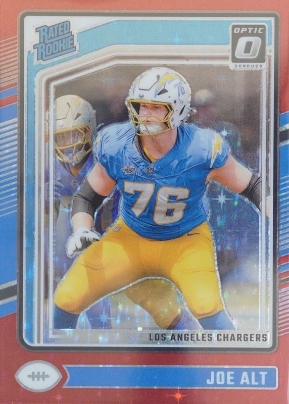 The Joe Alt 2024 Optic #254 Red Stars /(SSP) Rookie card in Raw condition has not changed in price in the last 30 days and was last sold for $6.99 .