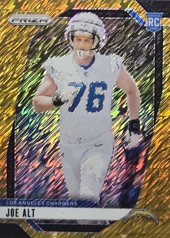 The Joe Alt 2024 Prizm #353 Gold Shimmer /10 Rookie card in Raw condition has not changed in price in the last 30 days and was last sold for $102.50 .