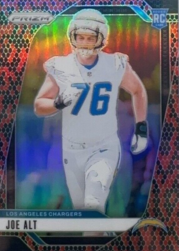 The Joe Alt 2024 Prizm #353 Snakeskin /(SSP) Rookie card in Raw condition has not changed in price in the last 30 days and was last sold for $84.99 .
