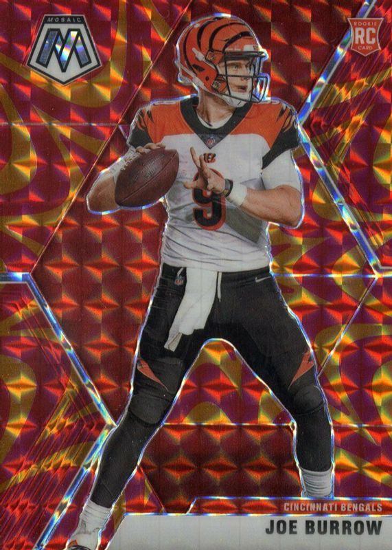 The Joe Burrow 2020 Mosaic #201 Reactive Orange Rookie card in Raw condition has moved down -$3.23 (-8.2%) in the last 30 days and was last sold for $36.00 .