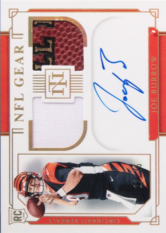 Joe Burrow 2020 National Treasures #RSC-JB Rookie NFL Gear Signature Combos - Prime /25 RAW Price Guide