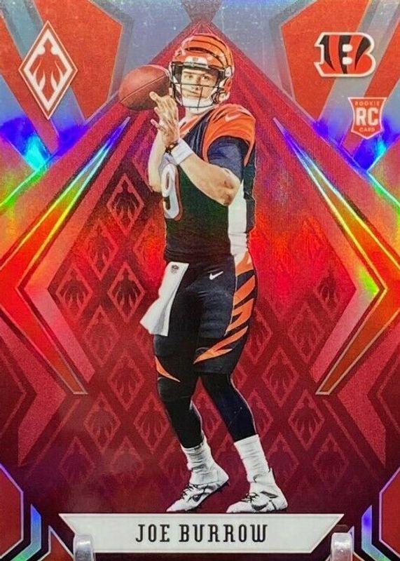 This card is 1 of 16 Joe Burrow's card variations in the 2020 Phoenix set being tracked by Sports Card Investor, including Base, Color Burst, Fire Burst, Silver, and Pink /199.