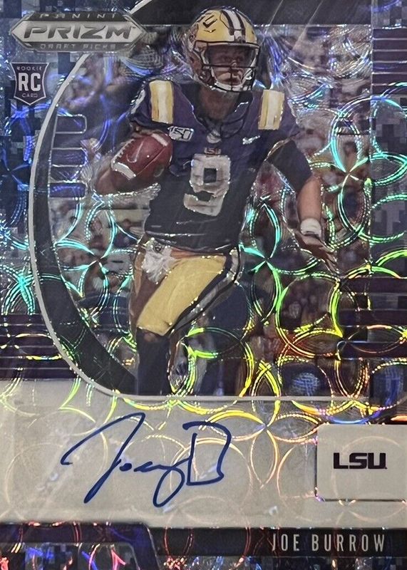 This card is 1 of 51 Joe Burrow's card variations in the 2020 Prizm Draft Picks set being tracked by Sports Card Investor, including Base, Blue, Green, Orange, and Pink Pulsar.