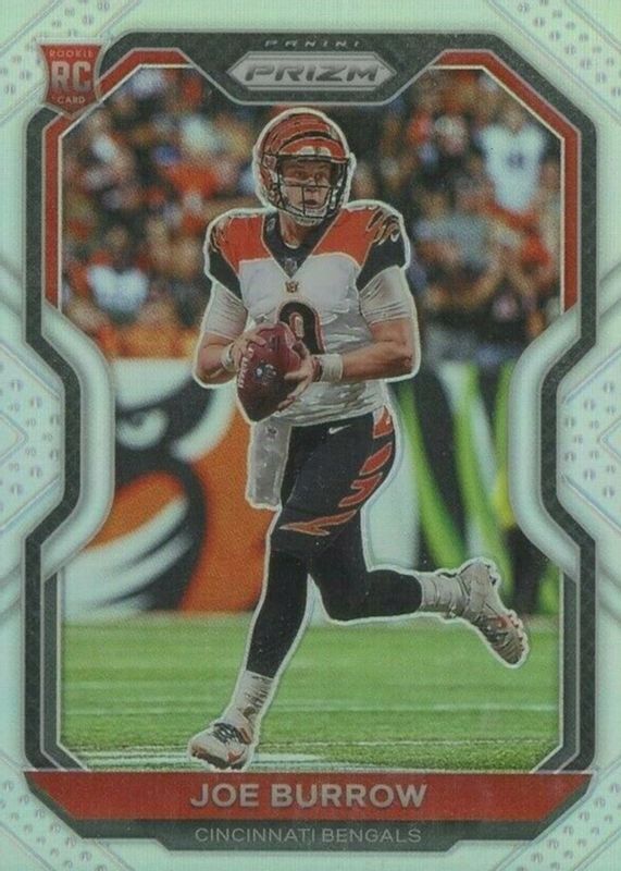 The Joe Burrow 2020 Prizm #307 Silver Rookie card in Raw condition has moved up $35.00 (+13.0%) in the last 30 days and was last sold for $305.00 .