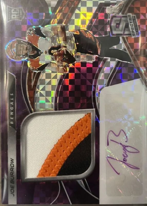Best Prices Available For Sale of Joe Burrow 2020 Spectra #201 Rookie Patch Auto - Neon Purple /35