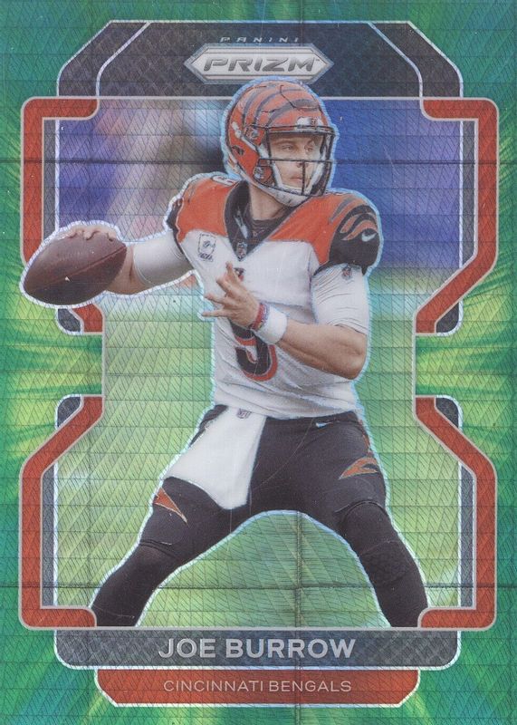 This card is 1 of 45 Joe Burrow's card variations in the 2021 Prizm set being tracked by Sports Card Investor, including Base, Disco, Green, Green Ice, and Lazer.