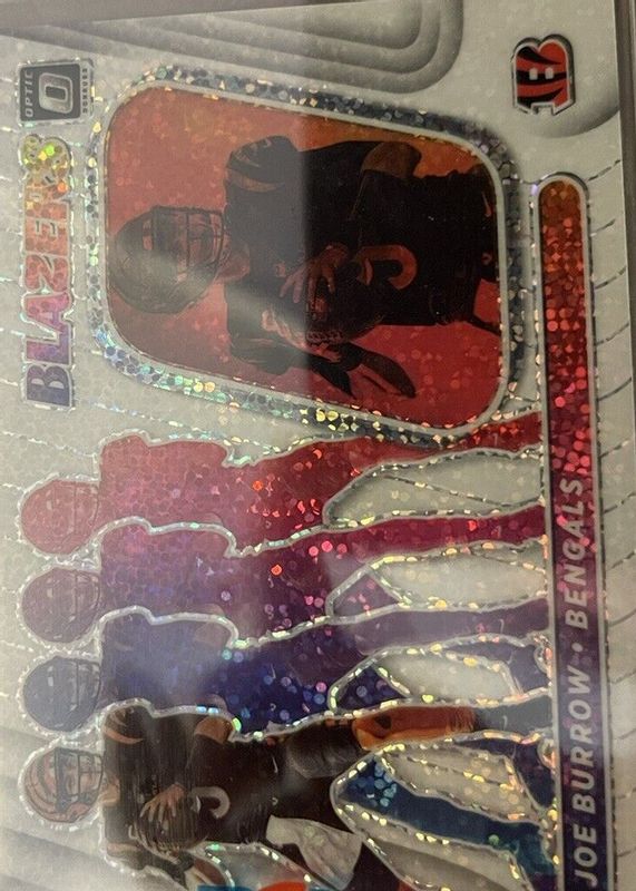 The Joe Burrow 2022 Optic #B-4 Blazers - White Sparkle /1 card in Raw condition has not changed in price in the last 30 days and was last sold for $475.00 .