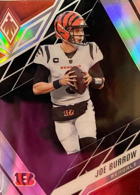 This card is 1 of 27 Joe Burrow's card variations in the 2022 Phoenix set being tracked by Sports Card Investor, including Onyx (/5), Red Mojo (/10), Red /250, Pink /199, and Lava /175.