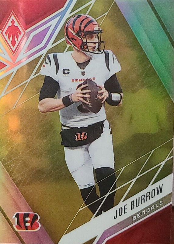 This card is 1 of 27 Joe Burrow's card variations in the 2022 Phoenix set being tracked by Sports Card Investor, including Onyx (/5), Red Mojo (/10), Red /250, Pink /199, and Lava /175.