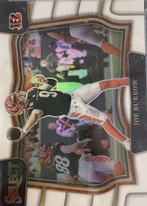 This card is 1 of 109 Joe Burrow's card variations in the 2022 Select set being tracked by Sports Card Investor, including Field Level Silver, Suite Level Disco, Suite Level Silver, Premier Level Neon Green Die-Cut /299, and Premier Level Orange Die-Cut /199.