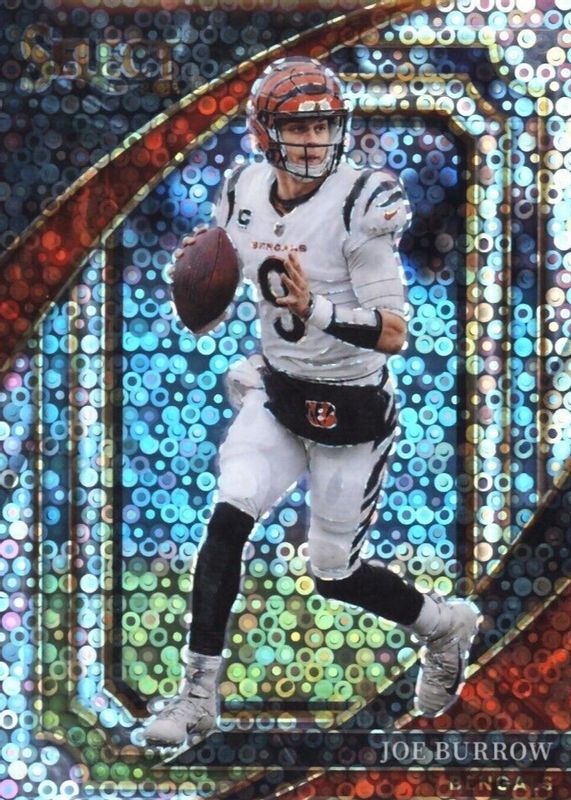 This card is 1 of 109 Joe Burrow's card variations in the 2022 Select set being tracked by Sports Card Investor, including Field Level Silver, Suite Level Silver, Premier Level Neon Green Die-Cut /299, Premier Level Orange Die-Cut /199, and Premier Level Tri-Color /199.