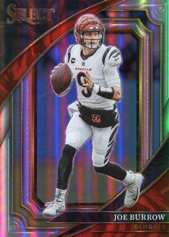 This card is 1 of 109 Joe Burrow's card variations in the 2022 Select set being tracked by Sports Card Investor, including Field Level Silver, Suite Level Disco, Premier Level Neon Green Die-Cut /299, Premier Level Orange Die-Cut /199, and Premier Level Tri-Color /199.