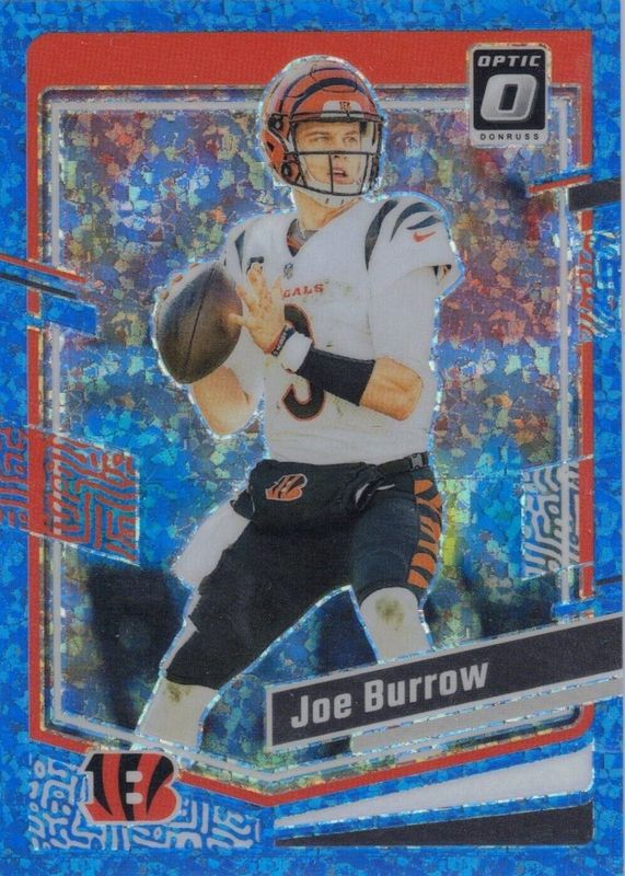 This card is 1 of 43 Joe Burrow's card variations in the 2023 Optic set being tracked by Sports Card Investor, including Wave /300, Aqua /299, Orange /249, Blue /199, and Flex /149.