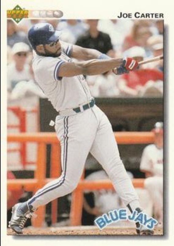 The Joe Carter 1992 Upper Deck #224 Base card is 1 of 3 Joe Carter's card variations in the 1992 Upper Deck set being tracked by Sports Card Investor, including Gold Hologram, and Homerun Heroes.