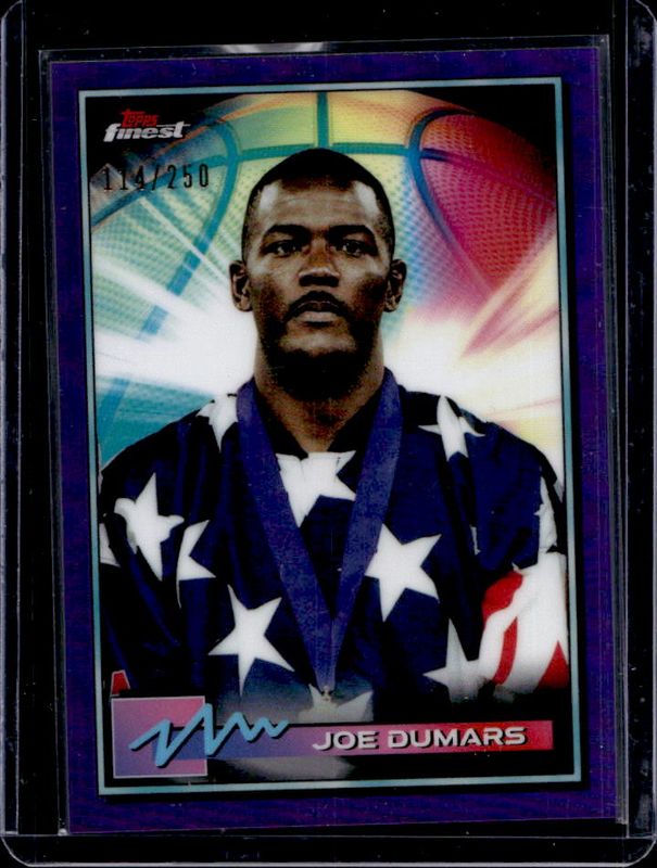 The Joe Dumars 2021 Topps Finest #4 Purple /250 card is 1 of 23 Joe Dumars' card variations in the 2021 Topps Finest set being tracked by Sports Card Investor, including Base, Refractor, Atomic /299, Speckle /199, and Blue /150.