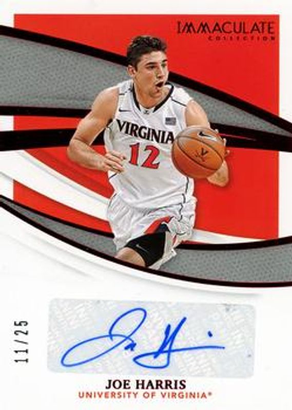 Joe Harris' Basketball cards are available in at least 84 sets. Joe Harris' biggest 7-day price movers are 2021 Immaculate Collegiate #II-JHA Immaculate Ink - Red /25, 2021 Immaculate Collegiate #II-JHA Immaculate Ink - Platinum /1, and 2021 Immaculate Collegiate #II-JHA Immaculate Ink /49.