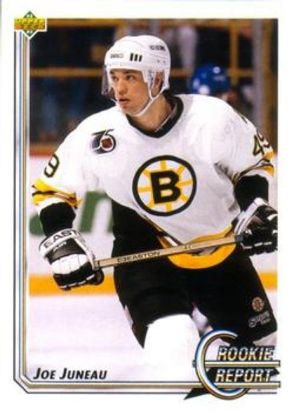 The Joe Juneau 1992 Upper Deck #354 Base card is 1 of 5 Joe Juneau's card variations in the 1992 Upper Deck set being tracked by Sports Card Investor, including Base, Ameri Can Rookie Team Holograms, Calder Candidates, and Gordie Howe Selects.