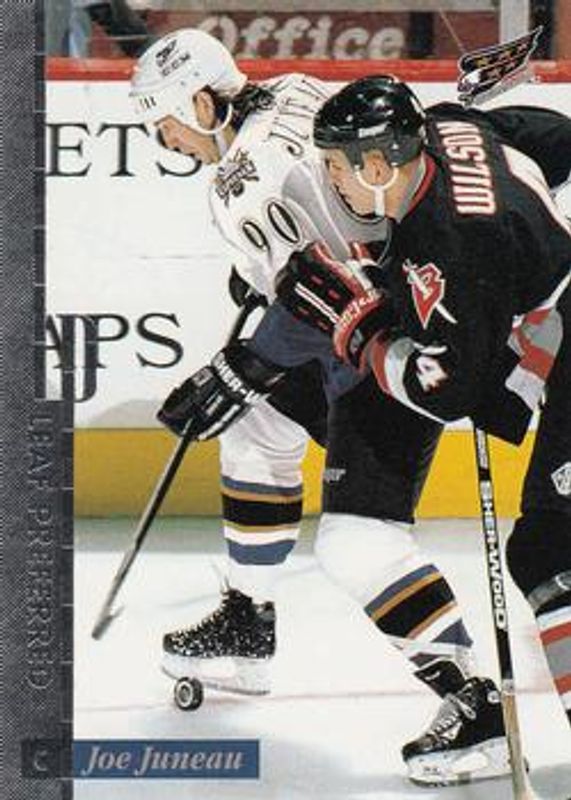 The Joe Juneau 1996 Leaf Preferred #49 Base card is 1 of 2 Joe Juneau's card variations in the 1996 Leaf Preferred set being tracked by Sports Card Investor, including Press Proof.