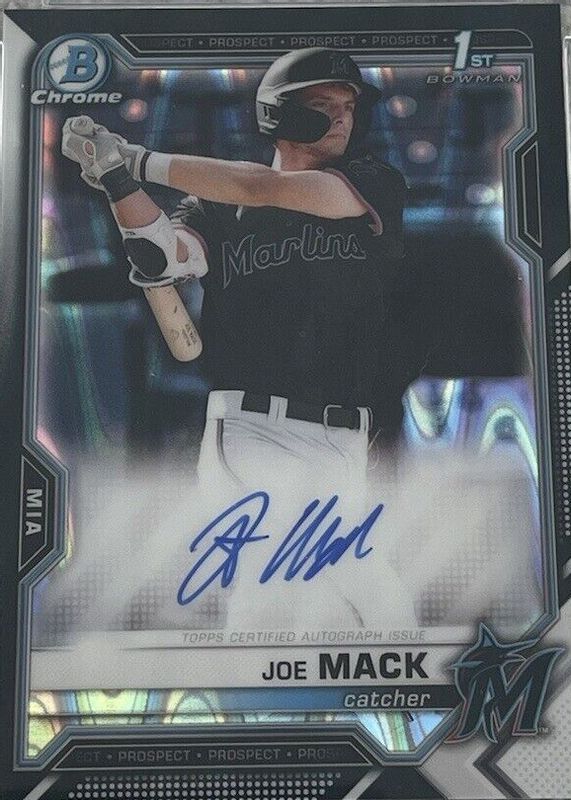 This card is 1 of 20 Joe Mack's card variations in the 2021 Bowman Draft set being tracked by Sports Card Investor, including Chrome - Aqua Lava Refractor /199 (1st), Chrome - Yellow Lava Refractor /75 (1st), Chrome DP Auto (1st), Chrome DP Auto - Refractor /499 (1st), and Chrome DP Auto - Purple Refractor /250 (1st).