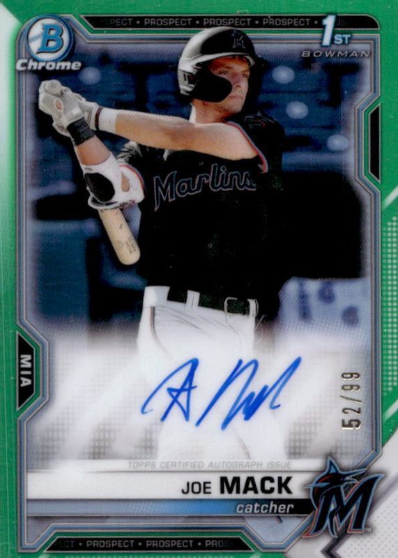 2021 Bowman Draft Chrome Pick Green Refractor /99 Joe Mack #CDA-JMA Auto