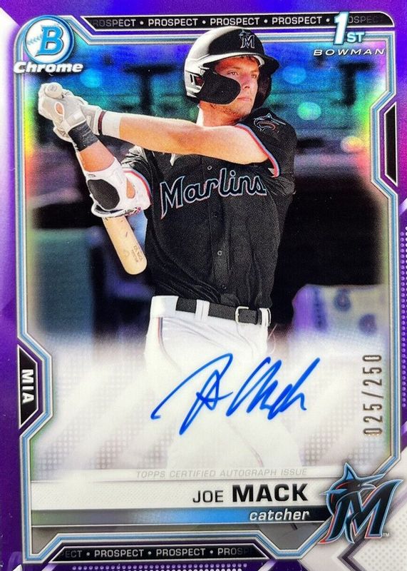 2021 Bowman Draft Joe Mack Chrome Auto 1st Purple Refractor #/250 Marlins