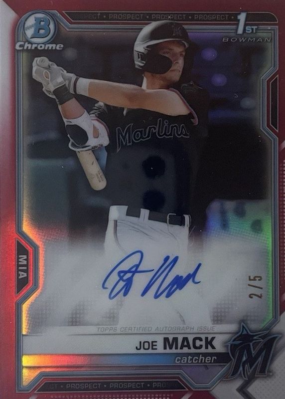 Joe Mack 2021 Bowman Draft #CDA-JMA Chrome DP Auto - Red Refractor /5 (1st) Rookie RAW Price Guide