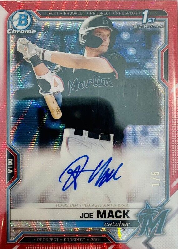 Best Prices Available For Sale of Joe Mack 2021 Bowman Draft #CDA-JMA Chrome DP Auto - Red Wave Refractor /5 (1st)