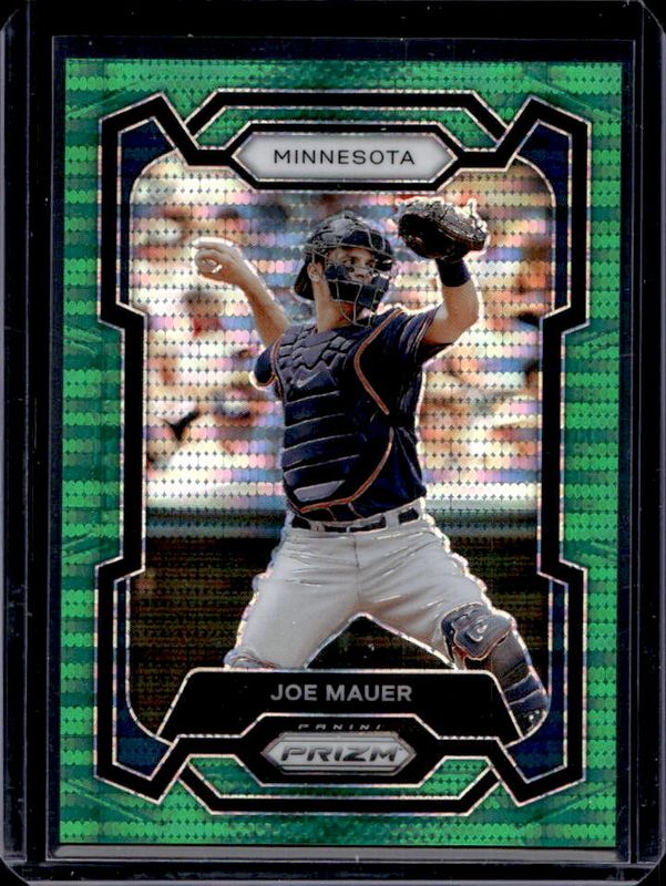 The Joe Mauer 2024 Prizm #7 Green Pulsar /25 card is 1 of 30 Joe Mauer's card variations in the 2024 Prizm set being tracked by Sports Card Investor, including Base, Blue Ice, Green, Green Ice, and Pink Ice.