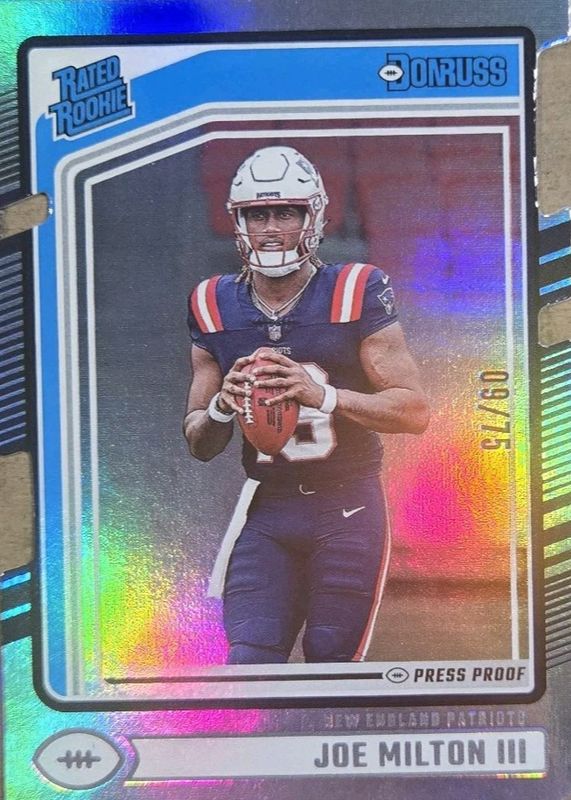2024 Donruss Rated Rookie Silver Press Proof Die-Cut 42/75 Joe Milton III #319