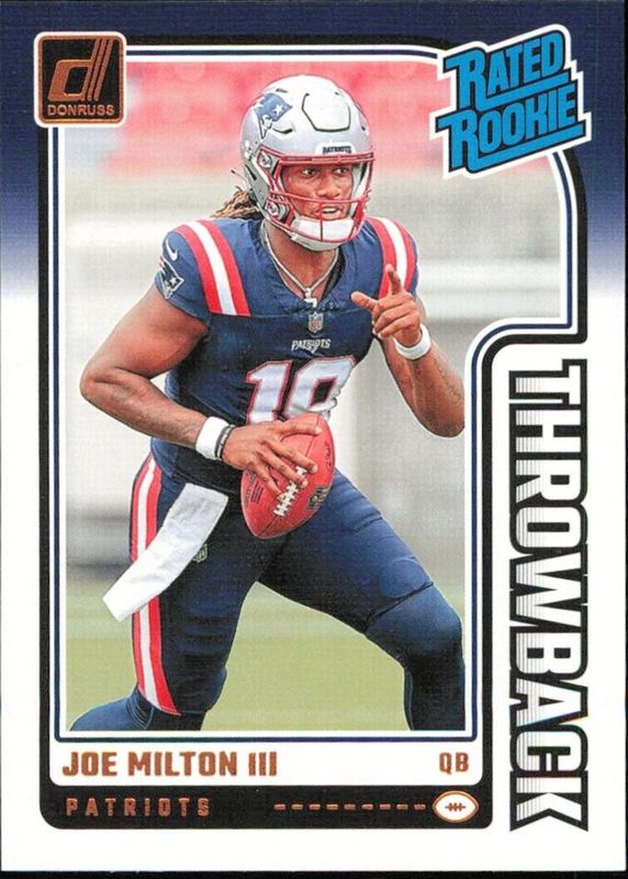 Joe Milton III Throwback Rated Rookies 2024 Donruss NFL #9 New England Patriots