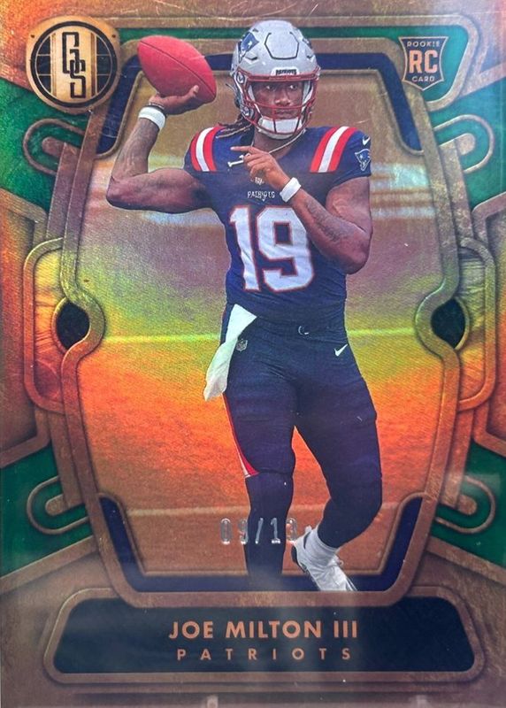 This card is 1 of 20 Joe Milton III's card variations in the 2024 Gold Standard set being tracked by Sports Card Investor, including Base /99, Platinum /75, White Gold /65, Citrine /40, and Rose Gold /40.