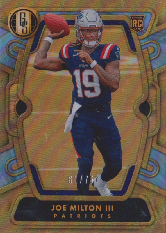 This card is 1 of 20 Joe Milton III's card variations in the 2024 Gold Standard set being tracked by Sports Card Investor, including Base /99, White Gold /65, Citrine /40, Rose Gold /40, and Violet /14.