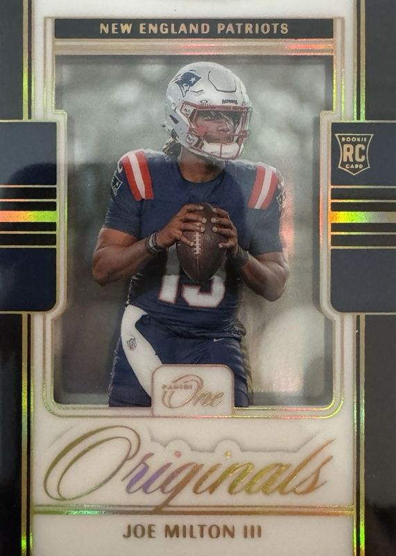 The Joe Milton III 2024 One #OO-JMN One Originals - Gold /10 Rookie card in Raw condition has not changed in price in the last 30 days and was last sold for $26.00 .