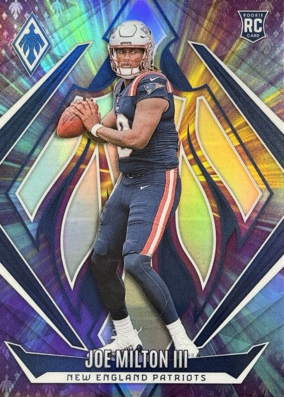 This card is 1 of 77 Joe Milton III's card variations in the 2024 Phoenix set being tracked by Sports Card Investor, including Base, Hyper, Ice, International, and Lazer.