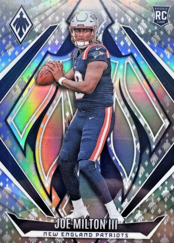 This card is 1 of 77 Joe Milton III's card variations in the 2024 Phoenix set being tracked by Sports Card Investor, including Base, Hyper, Ice, International, and Lazer.