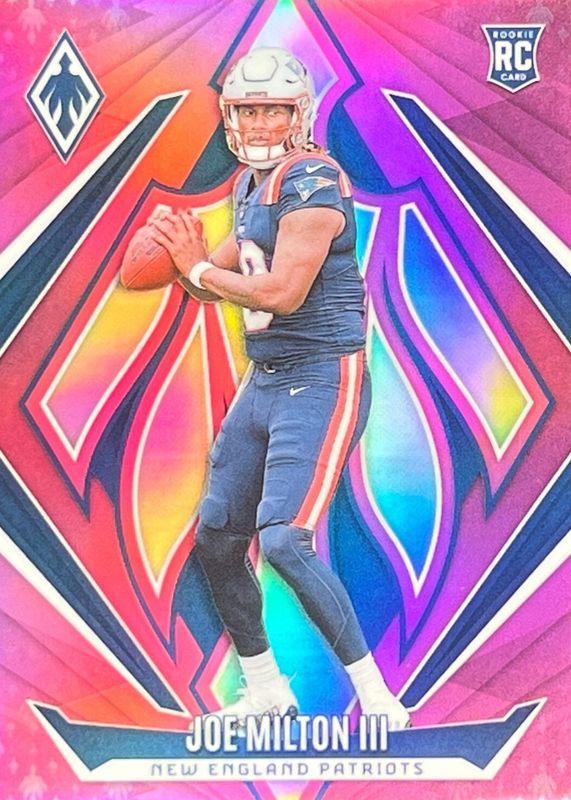 The Joe Milton III 2024 Phoenix #205 Pink /40 Rookie card in Raw condition has not changed in price in the last 30 days and was last sold for $7.50 .